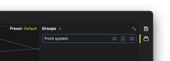 Toolbox on the right side of the screen. Groups can have individual mute, solo and equalization settings, and groups can be overlaid, meaning a loudspeaker can be a part of multiple groups at one time.