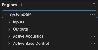 Once an engine is added, the Engines list shows the inputs, outputs, and other parameters associated with that processor.