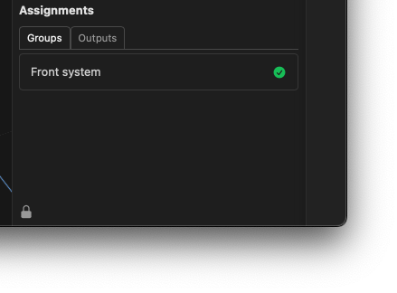 As used in the design process, Groups can be used to control multiple inputs, outputs, or speakers from one location. Create groups using the