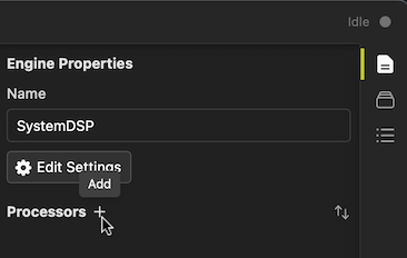 - Click the "+" icon under Processors in the properties box to assign a physical processor to the engine.