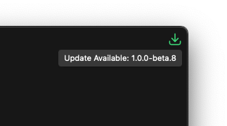When a new version of Fulcum One is available, both the home window and any project windows will show an update available icon. Click this icon and follow the on-screen prompts to automatically download and install the new version. Information about changes will be available in the online Changelog.